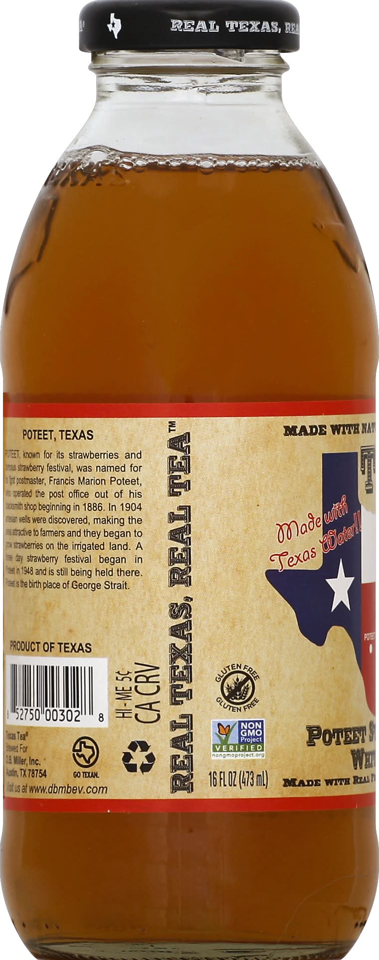 Brewed Organic White Tea (Water + Tea), Pure Cane Sugar, Poteet Strawberry Puree, Natural Strawberry Flavoring, Honey, Lemon Juice and Citric Acid Contains: 'Free From Gluten'