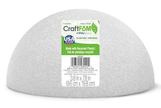 FloraCraft CraftFōM Half Ball is a versatile craft foam. Crafted from recycled plastic, this foam is distinguished by its crunchy cell structure, which allows for various modifications such as poking, picking, cutting, shaping, and painting. Lightweight in nature, it is easily attachable to presentation boards or can be hung as needed. The foam adapts to a multitude of creative endeavors, including classroom activities, kid’s crafts, group projects, party crafts, and seasonal décor. Additionally, it can be painted or coated to achieve any desired color or texture, making it suitable for both indoor and outdoor applications. Produced by a socially responsible American company, this product supports a range of creative and decorative possibilities.
