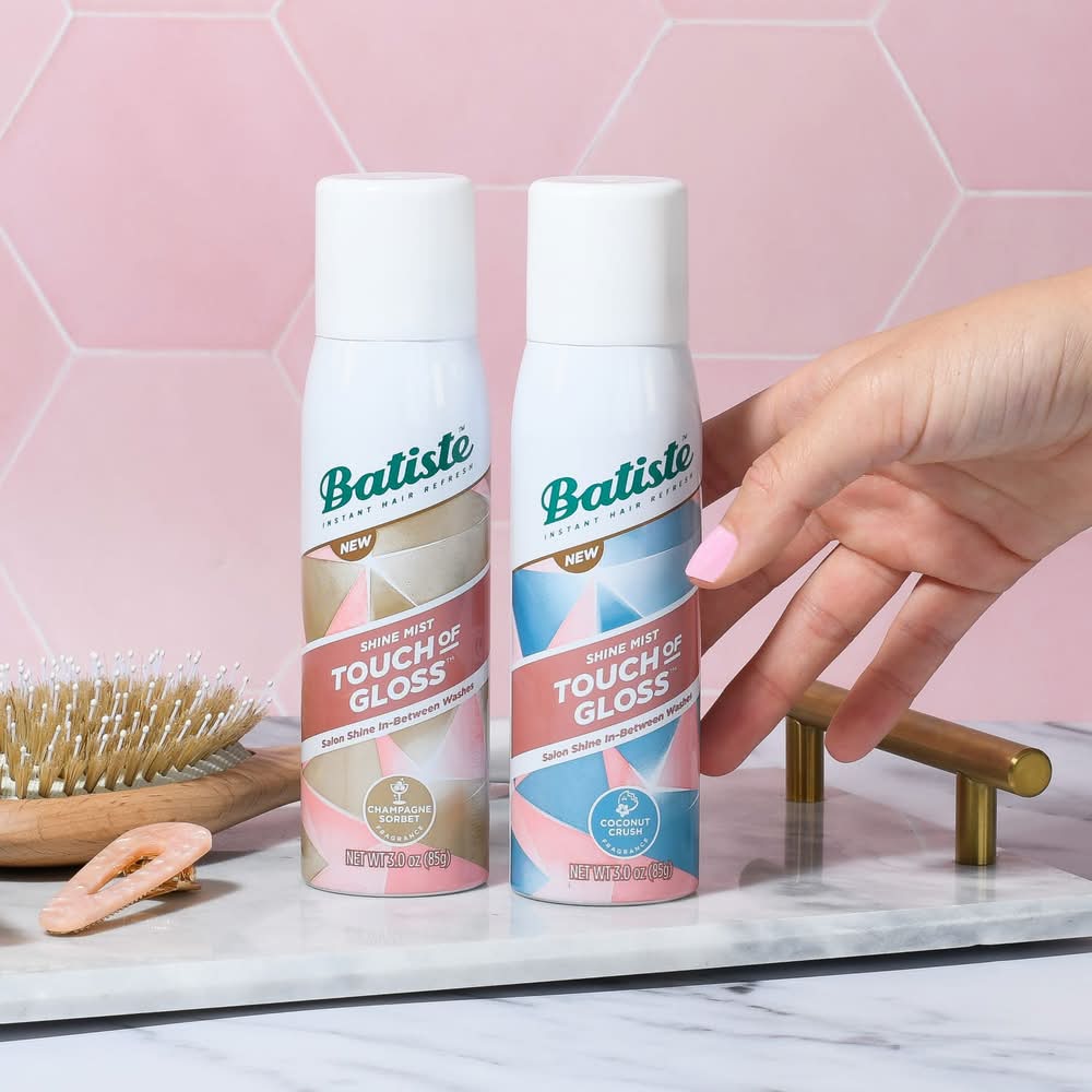 Batiste does more than Dry Shampoo! Touch of Gloss Shine mist will transform your dry, dull hair with a formula that keeps your hair polished in-between washes. Pair with Batiste Dry Shampoo for the perfect in-between wash routine. Use Batiste Dry Shampoo at the roots to refresh, and Batiste Touch of Gloss at the mid-lengths to ends to add shine. Church & Dwight Global PIM - ProductXM,