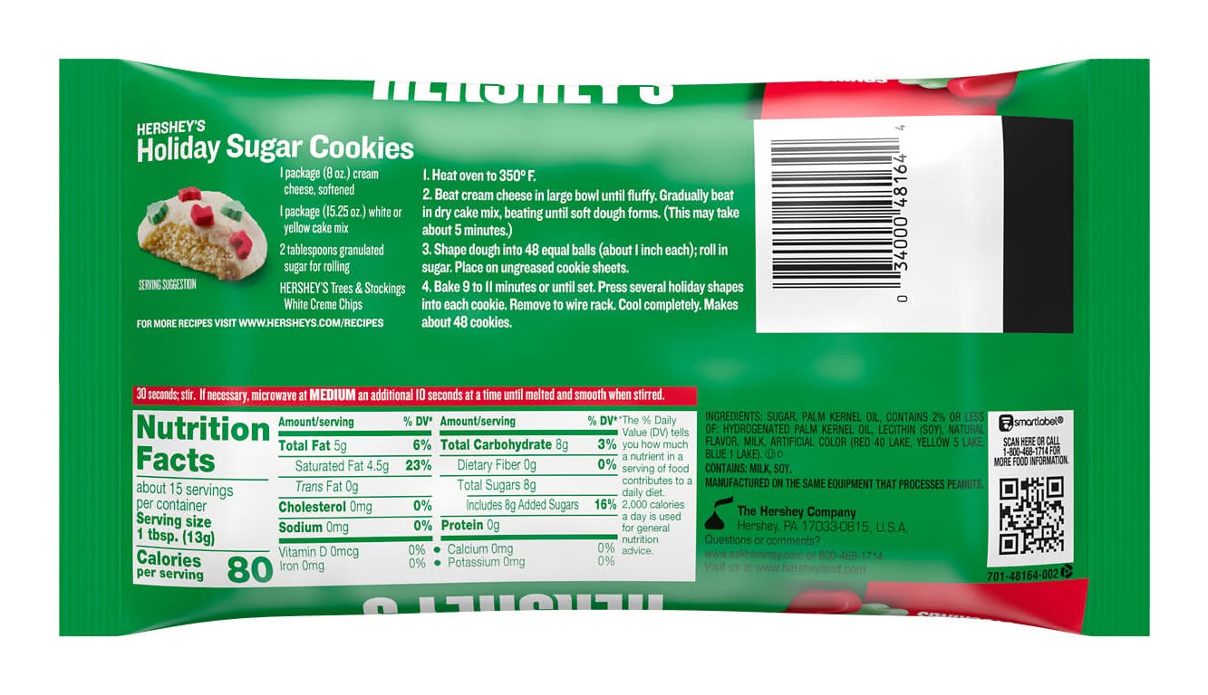 HERSHEY'S White Creme, Christmas Trees and Stockings Baking Chips Bag, 7 oz