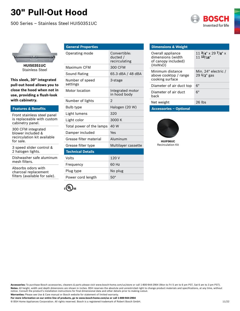 Uber Eats is available in hundreds of cities around the world. Enter your delivery address to shop for Bosch 500 Series Pull-Out Range Hood With Lights in Stainless Steel delivery near you.