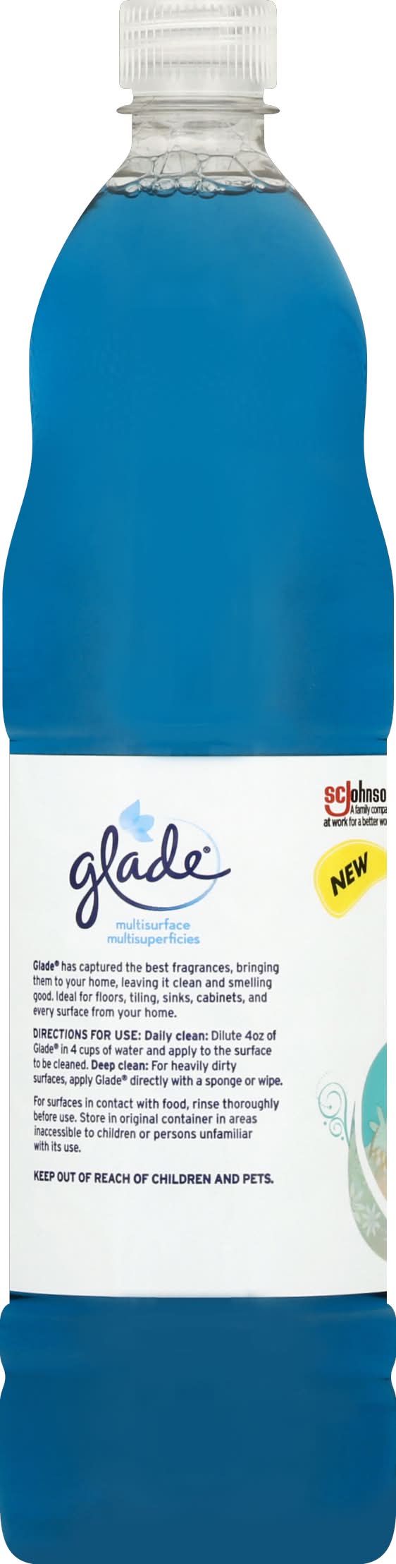 Directions: for Use: Daily Clean: Dilute 4 oz of Glade in 4 cups of water and apply to the surface to be cleaned. Deep clean: For heavily dirty surfaces, apply Glade directly with a sponge or wipe. For surfaces in contact with food, rinse thoroughly before use. Store in original container in areas inaccessible to children or persons unfamiliar with its use.