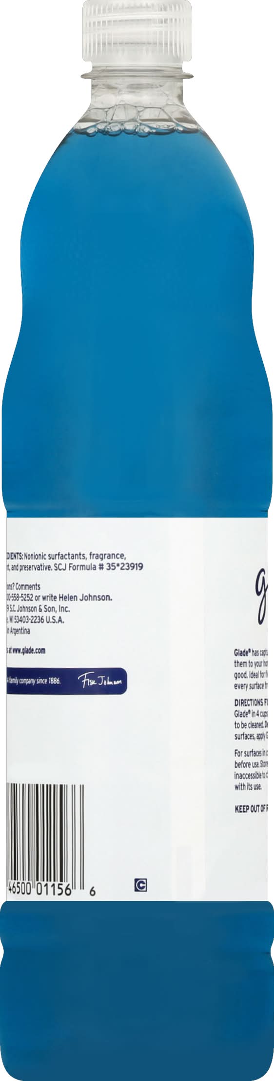 A family company at work for a better world. New. Cleaning. Fragrance. A family company since 1886. - Fisk Johnson. Glade has captured the best fragrances, bringing them to your home, leaving it clean and smelling good. Ideal for floors, tiling, sinks, cabinets, and every surface from your home. Question? Comments call 800-558-5252 or write Helen Johnson. Visit us at www.glade.com. Made in Argentina. SC Johnson,