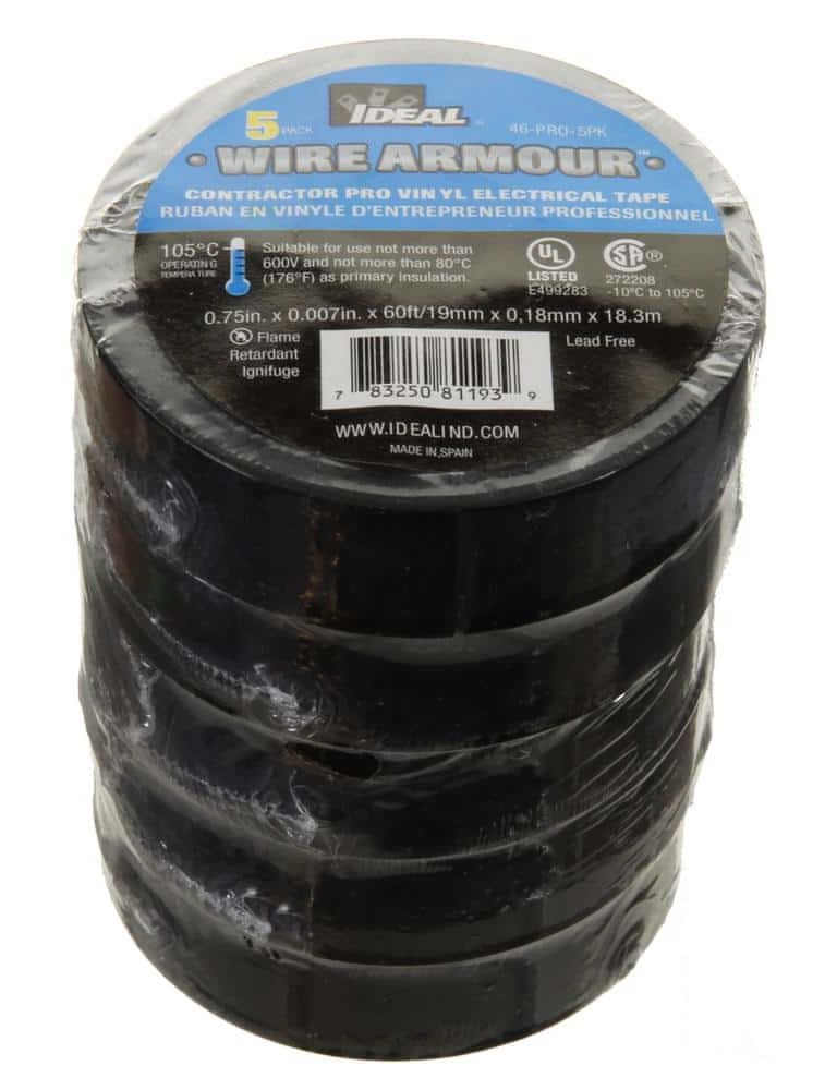 Ideal Wire Armour Contractor Pro Vinyl Electrical Tape, 3/4 in X 60 ft X 0.007 in, Black (5 ct)