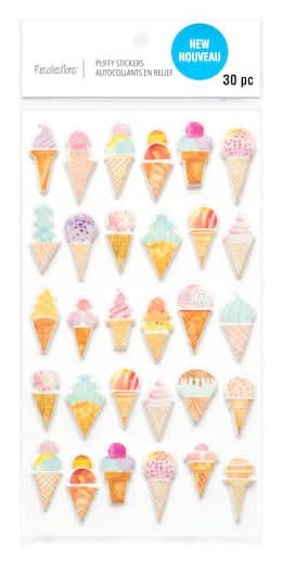 Recollections Ice Cream Cones Puffy Stickers, 3.875 Inch x 7 Inch (30 ct)