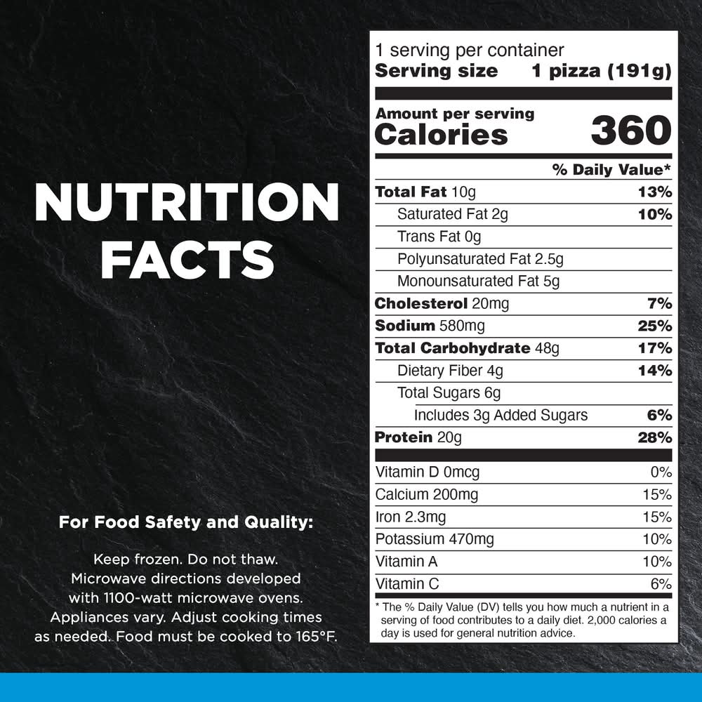Enjoy satisfying and quick meals with Healthy Choice Flatbread Chicken Sausage Supreme and Cauliflower Crust Frozen Pizza. Healthy Choice Flatbread Pizza offers healthy frozen meals that give your body everything it needs to feel satisfied. This frozen pizza combines a wheat, barley and cauliflower pizza crust with savory garlic-herb tomato sauce, red onion, diced red and green bell peppers, all-natural* chicken sausage crumbles and reduced fat mozzarella cheese for a frozen pizza that is as delicious as it is healthy. A tasty experience any day of the week, this frozen meal is made with 20 grams of protein per serving to deliver wholesome microwave meals that don’t sacrifice flavor. Healthy Choice Flatbread Pizza is perfect for quick and delicious healthy frozen meals at work or pizza night at home after a long day. Simply microwave this frozen pizza for 3 minutes, then check to make sure the food is cooked thoroughly before enjoying. Keep this 6.95 ounce Healthy Choice Cauliflower Crust pizza in your freezer to have wholesome, healthy meals on hand. Healthy Choice never compromises on ingredients so you can taste the goodness in every bite. *No artificial ingredients, minimally processed Conagra Brands,