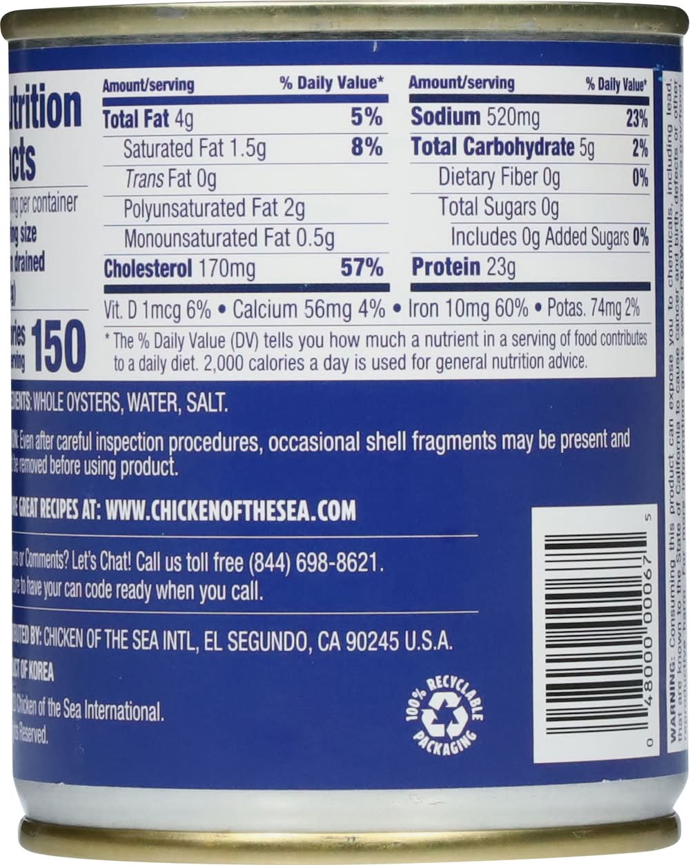 Whole Oysters • Chicken of the Sea Intl, El Segundo,CA,90245,USA • Packaging: Reusable
