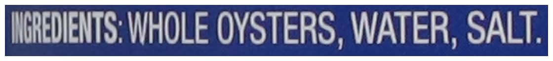 Ingredients: Whole Oysters, Water, Salt Contains: Molluscan Shellfish, Oysters