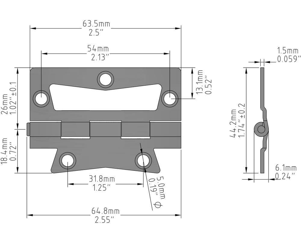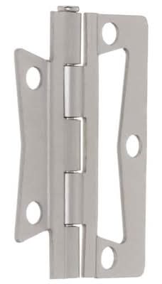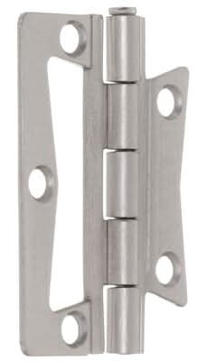 Featuring a 5 knuckle full mortise design, this Non-Mortise Hinge is made from steel and features a satin nickel finish for added corrosion resistance. Each hinge has a removable pin for quick and easy installation or removal of doors. The non-mortise design eliminates the need for door modification. Cancer and Reproductive Harm -https://www.p65warnings.ca.gov/ • Color: Satin nickel • Size: 2-1/2 In.