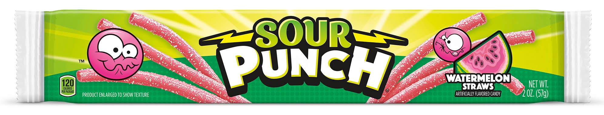 think you can handle sour punch straws® watermelon candy?! get ready to pucker up with this super sour flavor!a perfect treat for any risk-taker - challenge your friends!size: 2ozCountry of Origin: usaAll candy is non-returnable