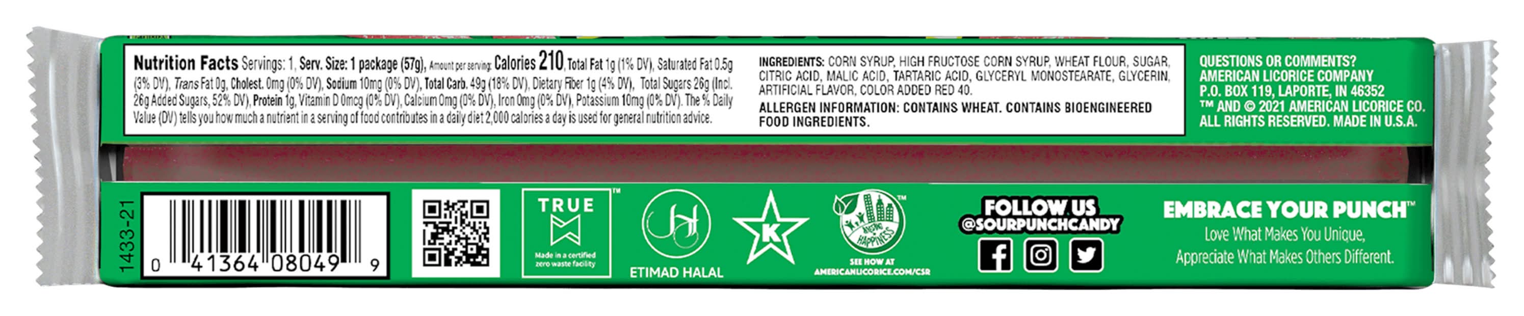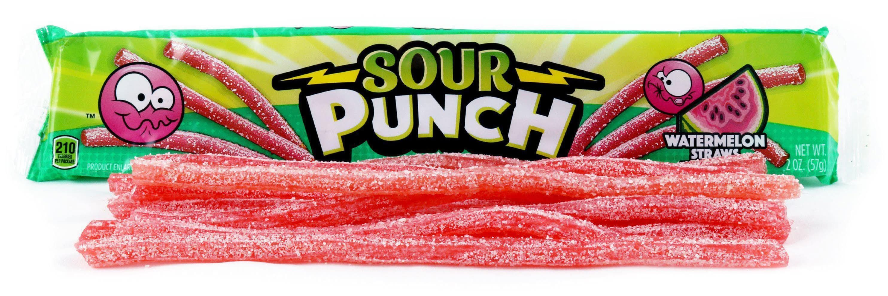 think you can handle sour punch straws® watermelon candy?! get ready to pucker up with this super sour flavor!a perfect treat for any risk-taker - challenge your friends!size: 2ozCountry of Origin: usaAll candy is non-returnable