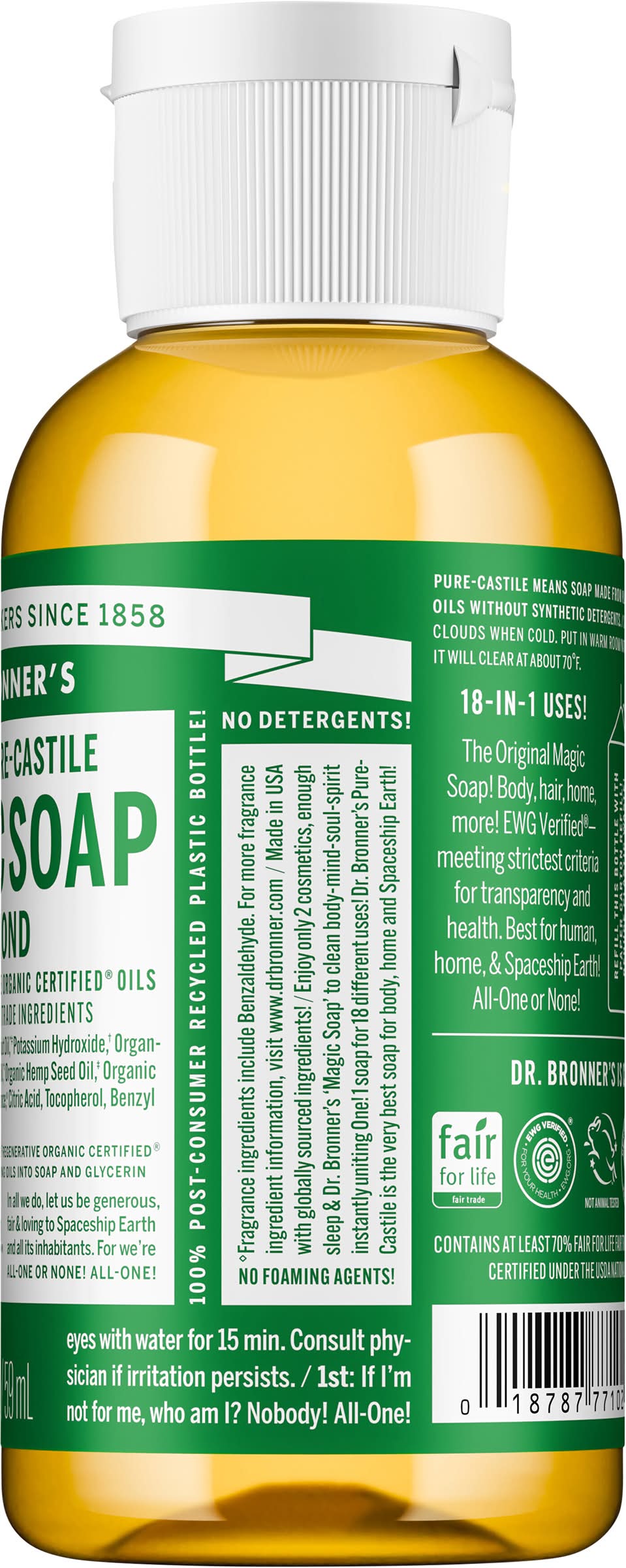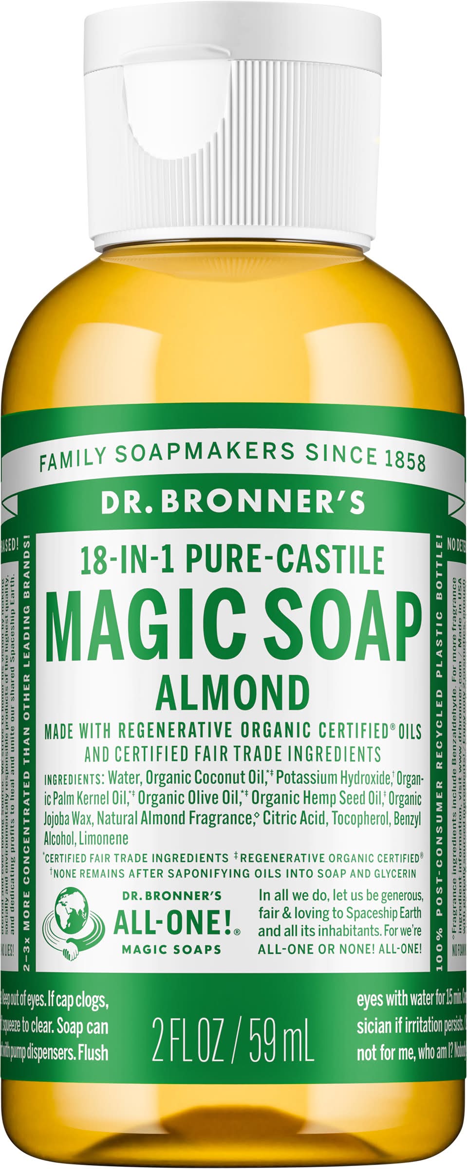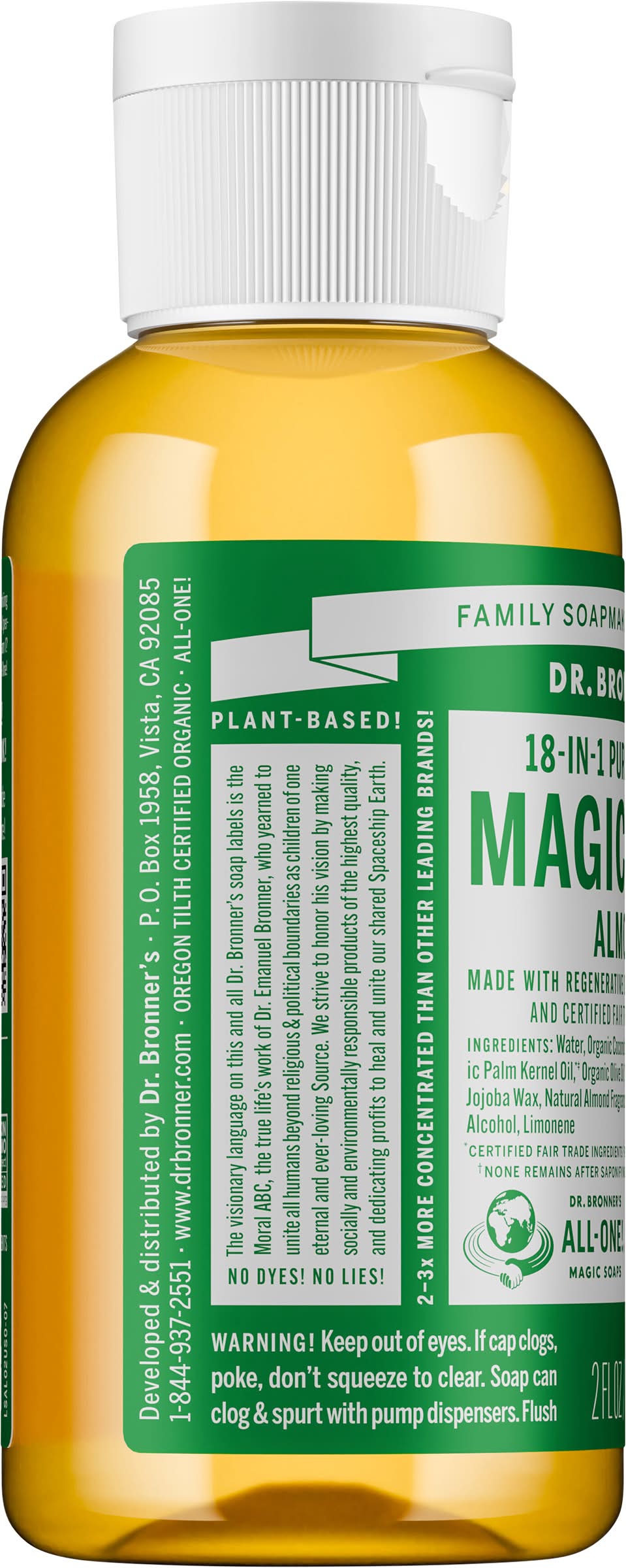 Magic Soap, Pure-Castile, 18-in-1, Almond Dr. Bronner's, Vista, CA, 92085