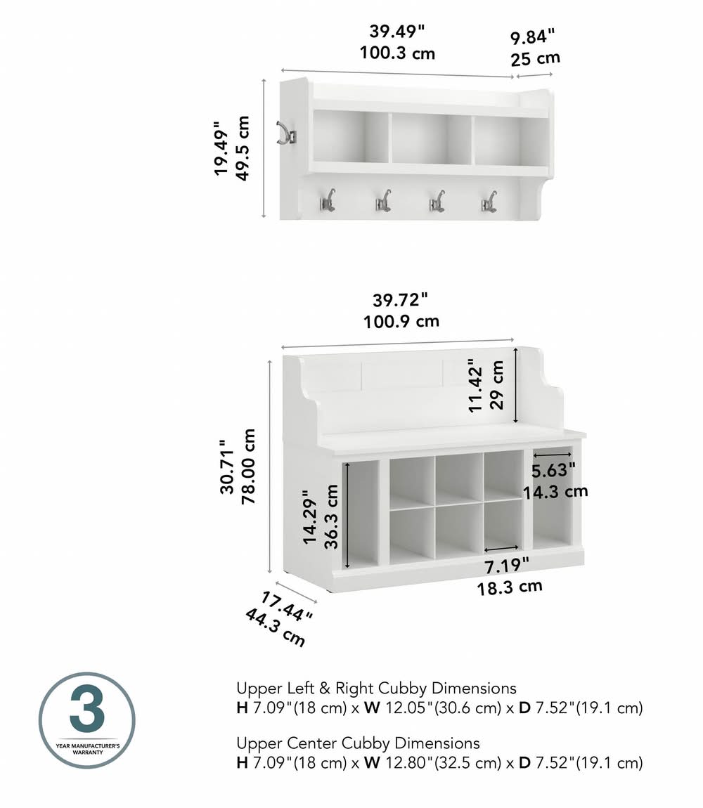 View a store’s business hours to see if it will be open late or around the time you’d like to order Bush Furniture Woodland Entryway Bench With Shelves and Wall Mounted Coat Rack 40 W.