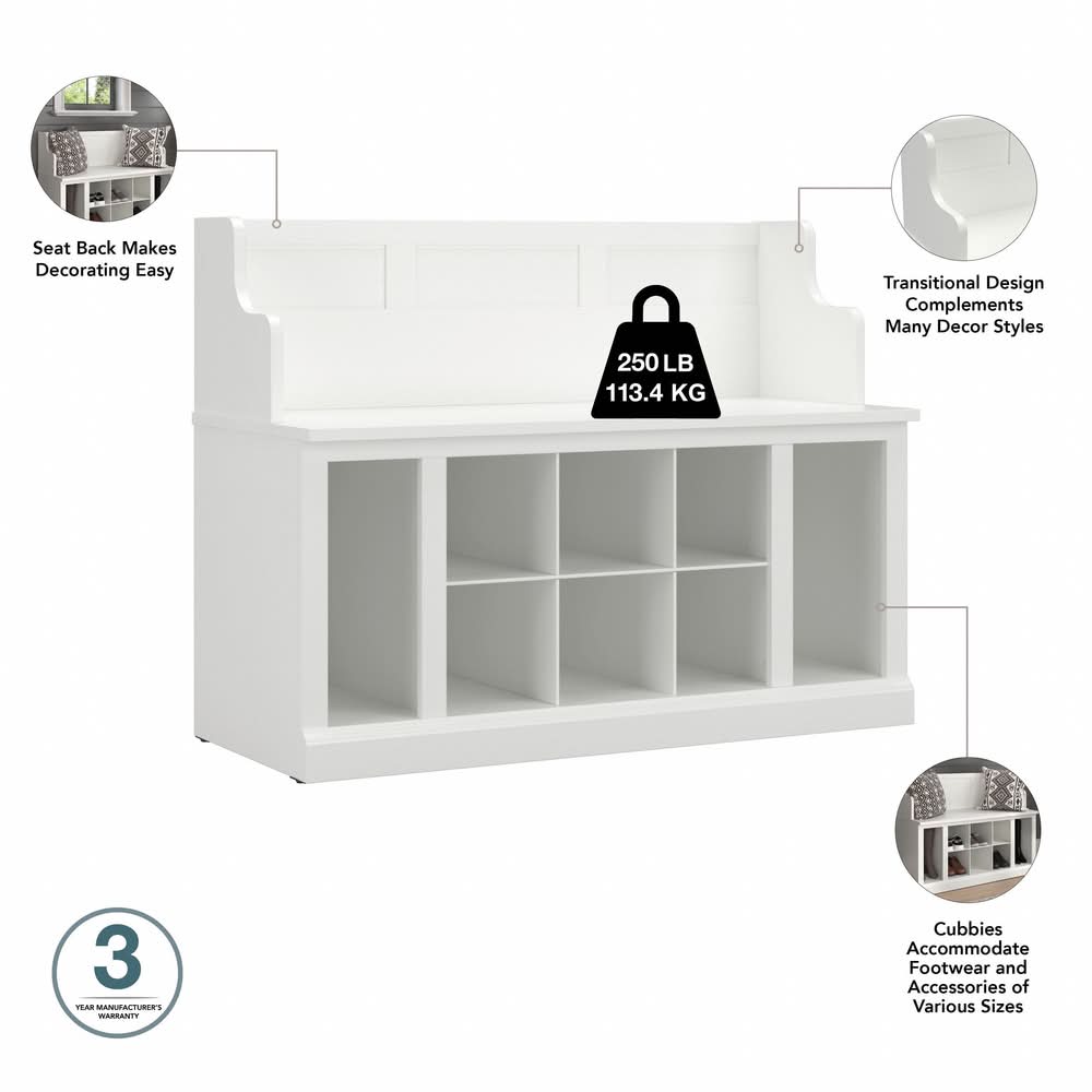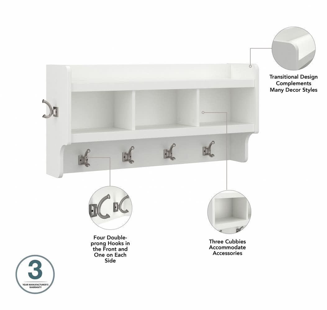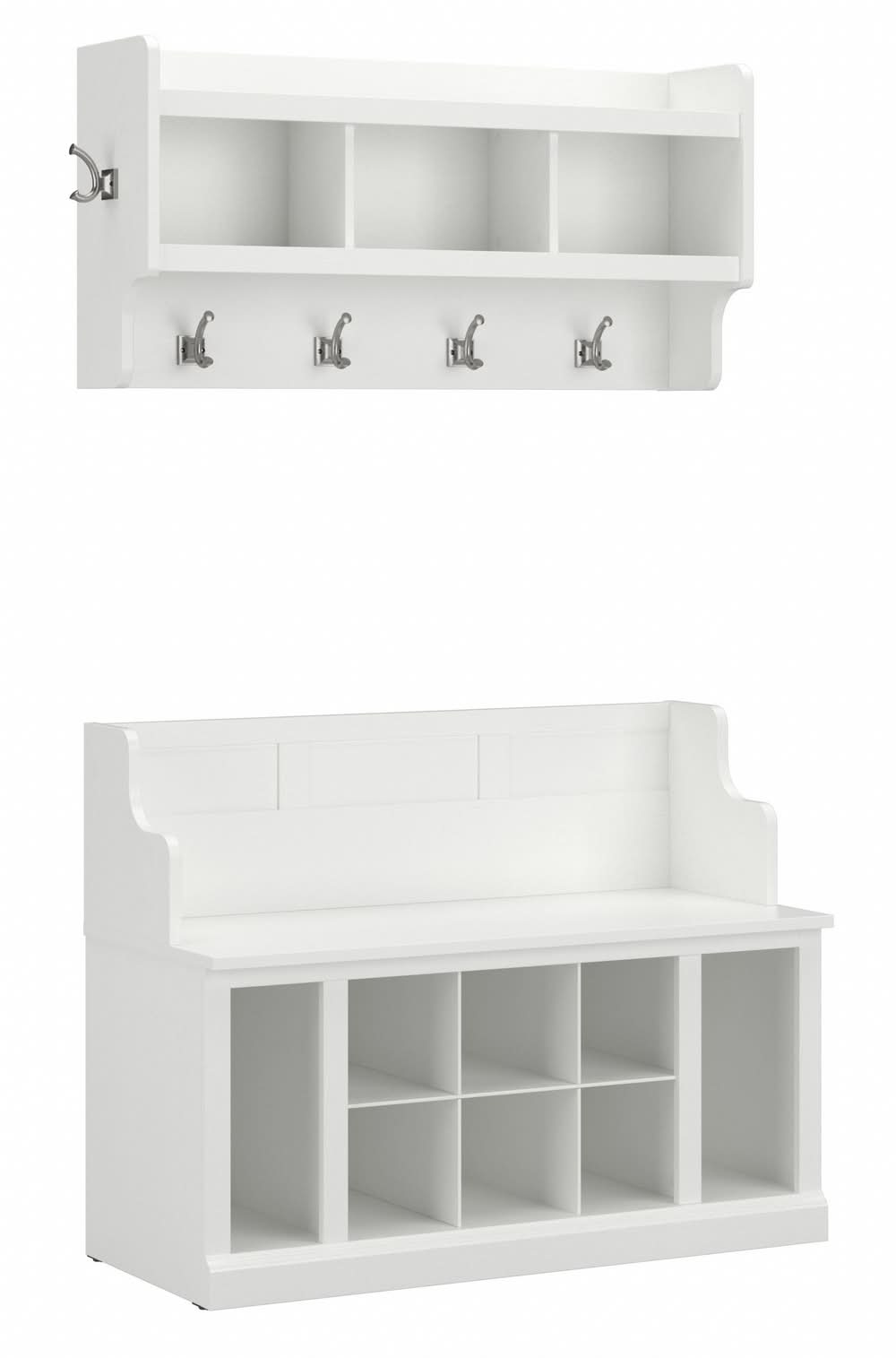 Bush Furniture Woodland Entryway Bench With Shelves and Wall Mounted Coat Rack 40 W, White Ash