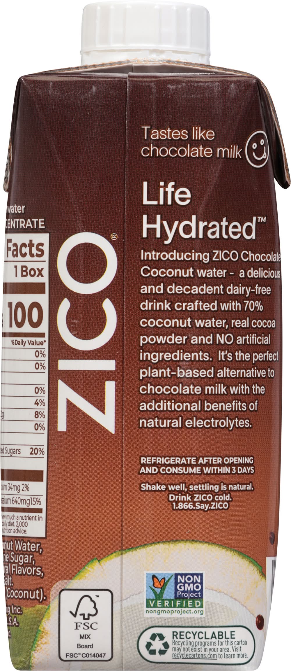 Plant-Based Chocolate Coconut Coconut Beverage • ZICO Rising Inc., • Packaging: Reusable