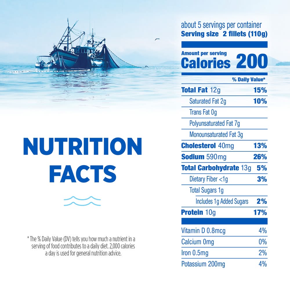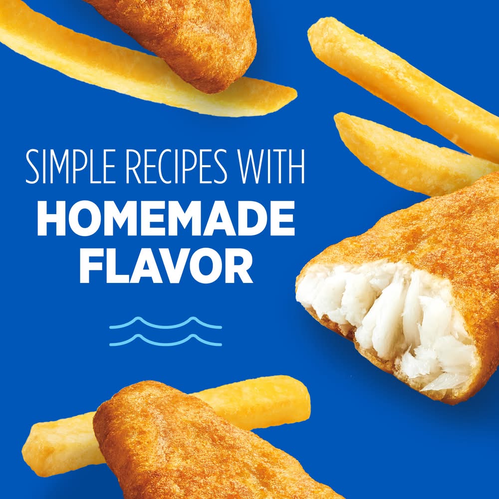 Savor the taste of golden battered fish fillets, expertly cut from 100% whole fillets to ensure premium quality. Each serving is not only a good source of protein but also contains and is free from trans fats. These fillets are conveniently sealed in a freshness pouch to maintain their fresh taste. • Number of servings: 5 • Conagra Brands, Chicago, IL, 60654 • Packaging: Reusable