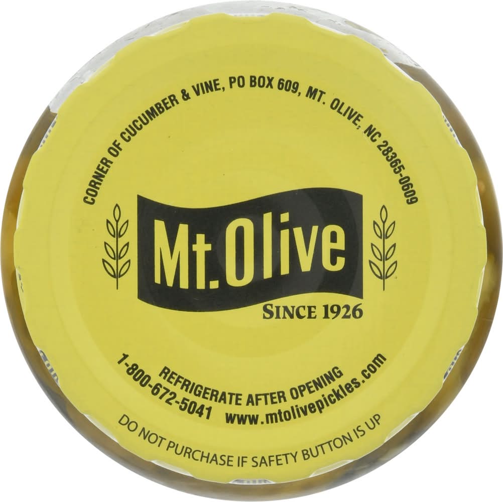 Yes: Gluten free. New! Since 1926. No: High Fructose Corn Syrup; Yellow No. 5. www.MtOlivePickles.com. 1-800-672-5041. www.MtOlivePickles.com. Visit MtOlivePickles.com. Please recycle. Mt Olive Pickle,