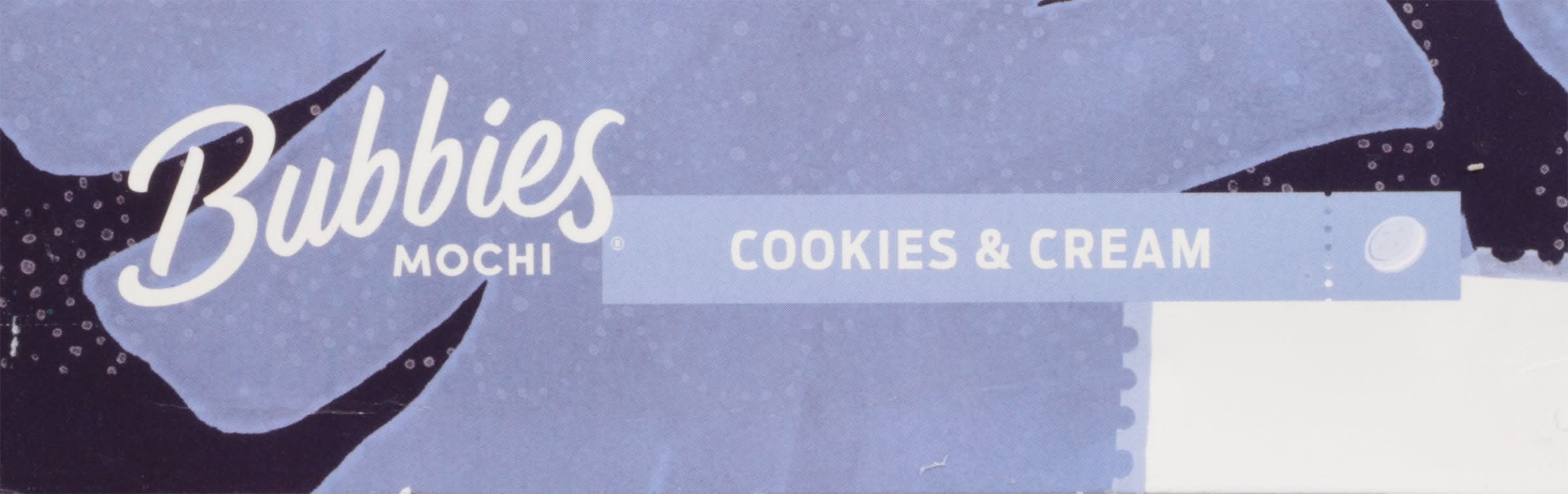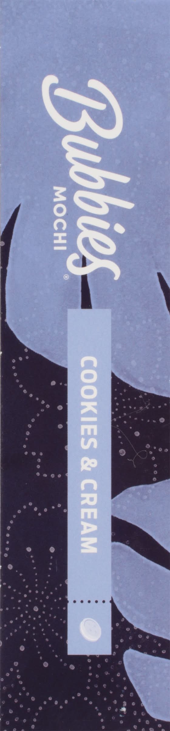 Ice cream wrapped in sweet mochi. Per Mochie Piece: 90 calories. Certified gluten free. GFCO.org. Simple ingredients. Next Stop: Paradise. Bubbies take you on a trip, and it comes on quick when you take a bite! Surprisingly soft, delightfully chewy mochi. Rich, creamy super-premium ice cream. That blissfully unexpected wow! Before you know it, you're already there: paradise. And with the best ingredients, the highest standards, and cookie pieces in every bite, each piece is a perfectly portioned ticket. Let's go. No rBST (Milk from cows not treated with rBST. No significant difference has been shown between milk derived from rBST-treated and non-rBST-treated cows). www.bubbiesicecream.com. Instagram. Facebook. Pinterest. Please recycle me! Made in U.S.A. • Bubbies Homemade Ice Cream & Desserts Inc., Phoenix, AZ, 85043 • Packaging: Reusable