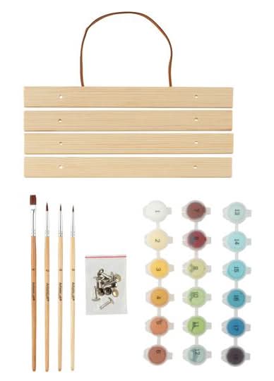 Complete with brushes, numbered paint pots, a pre-printed canvas sheet and a wooden hanger for display, this kit has everything needed to paint a darling orange tabby cat surrounded by butterflies. Tabby cat with butterflies design. 8" x 10" (20.3cm x 25.4cm) finished size. 331 numbered sections. Instruction sheet included. Some assembly required for display hanger. Conforms to ASTM D-4236