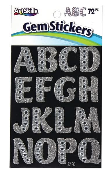 Give your projects a professional, eye-catching look with these 72 ArtSkills Gem Stickers silver glitter letter stickers. Create banners, signs, and other crafts with these sparkling stickers. The 72 letters allow for creativity and deliver a clean project while offering more than enough choice for several applications. Quick peel-and-stick application of these ArtSkills Gem Stickers silver glitter letter stickers makes them easy to apply and reposition when needed without creating rips, tears, or holes in their wake. - Make your project sparkle with silver letter stickers - Item dimensions: 4.5W x 8L - Each of these letters features an ultra-fine glitter and faceted gemstone surface - Pack contains 72 letters - These stickers are full adhesive and come on a convenient peel-and-stick sheet - Each pack contains all the letters that you will need in a beautiful Glitter and Gem design
