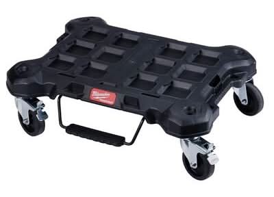 The Milwaukee PACKOUT Modular Storage System is the industry's most durable and versatile storage system. The PACKOUT Dolly is constructed with impact resistant polymers and smooth roll wheels, providing users up to 250 lbs. of weight capacity in job site conditions. The QUICKSTOP Loading Lever helps keep the dolly in place when loading and unloading, giving users increased productivity on the job site. The PACKOUT Modular Storage System allows users to customize and build their own storage system to easily transport and organize their tools and accessories. • Color: Black • Size: 24 In X 18 In