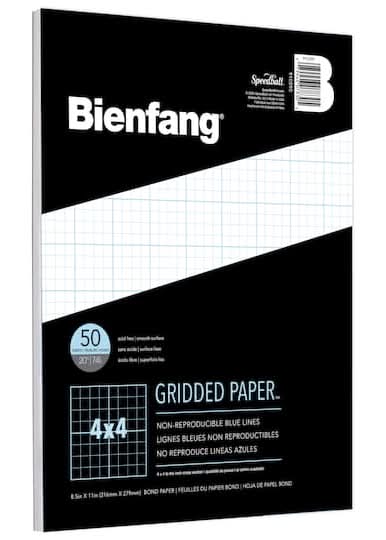 Purchase the Bienfang Designer Gridded Paper Pad at Michaels. Great for designing, drawing and pattern-making, this smooth surface texture paper is divided with non-reproducible blue lines that make for easy measuring. Available in multiple sizes .NON-REPRODUCIBLE GRID: Divided with non-reproducible blue lines in increments with thinner lines in quarter inch increments forming 4 blocks per square inch . DESIGNED FOR PROFESSIONAL AND PERSONAL USE: Bienfang grid paper is popular with draftspeople and graphic artists . SMOOTH SURFACE PAPER: Great for designing, drawing and pattern-making . Bienfang Designer Gridded Paper Pad
