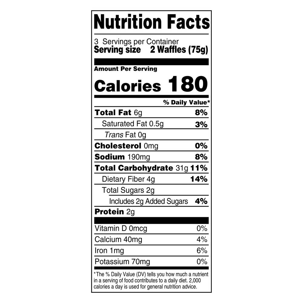 Keep frozen. Toaster Heating Instructions: Heat waffles in toaster on the low heat setting for 3-4 minutes or until crispy and hot. Two toastings may be required to heat completely. Toaster heating capabilities vary, please refer to the manufacturer's instructions. Attend toaster while heating. Oven or Toaster Oven Cooking Directions: Preheat oven to 400 degrees F. Place waffles flat on baking sheet in oven or on rack in toaster oven for about 6-7 minutes or until crispy and hot. Individual oven and toaster oven temperatures and times may vary. Caution: Waffle will be hot. Keep frozen until ready to use. Do not refreeze thawed product. Toast or heat before eating. An adult should supervise heating by children.