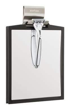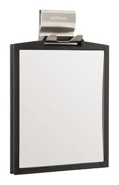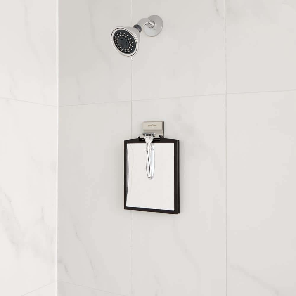 The DOPPIO Double Sided Shower Mirror makes grooming in the shower a much easier task for men and women alike. Modern and simplistic, the stainless steel hook perfectly stores one razor and the mirror easily lifts off for an up-close shave. One side offers 3X magnification while the other side is true scale. • Color: Black • Size: 7.125x10.5 in