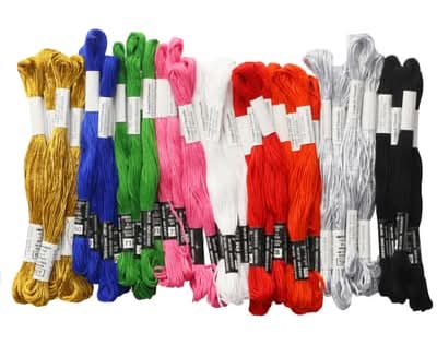 Find the Holiday Embroidery Floss Assortment by Loops & Threads at Michaels. Give your holiday embroidery and cross stitch projects a touch of personal flair with this festive floss assortment from Loops and Threads. Featuring a mix of bright and metallic hues, use to make ornaments, add lovely accents to pillows and other home decor pieces, stitch an inviting winter scene for the wall and so much more! Includes assorted colors. 8.75 yd. (8 m) skein length. 36 skeins. Cotton and nylon • Color: Assorted • Size: 315 in