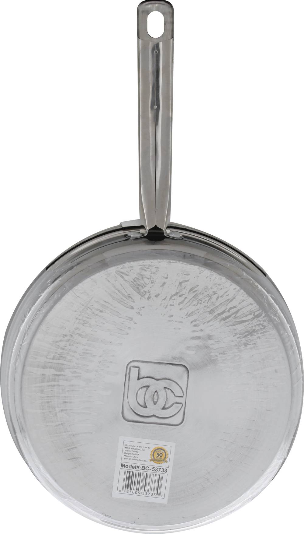 BC-53733. Premium stainless quality. Durability tested. Scratch resistant surface. Gas. Electric. Induction. Ceramic glass. Dishwasher Safe. Product development & design almonst 50 years. Thanks for growing with us. www.ClubBeneCasa.com. Designed in USA. Made in China. Mbr Industries, Inc., Miami-FL