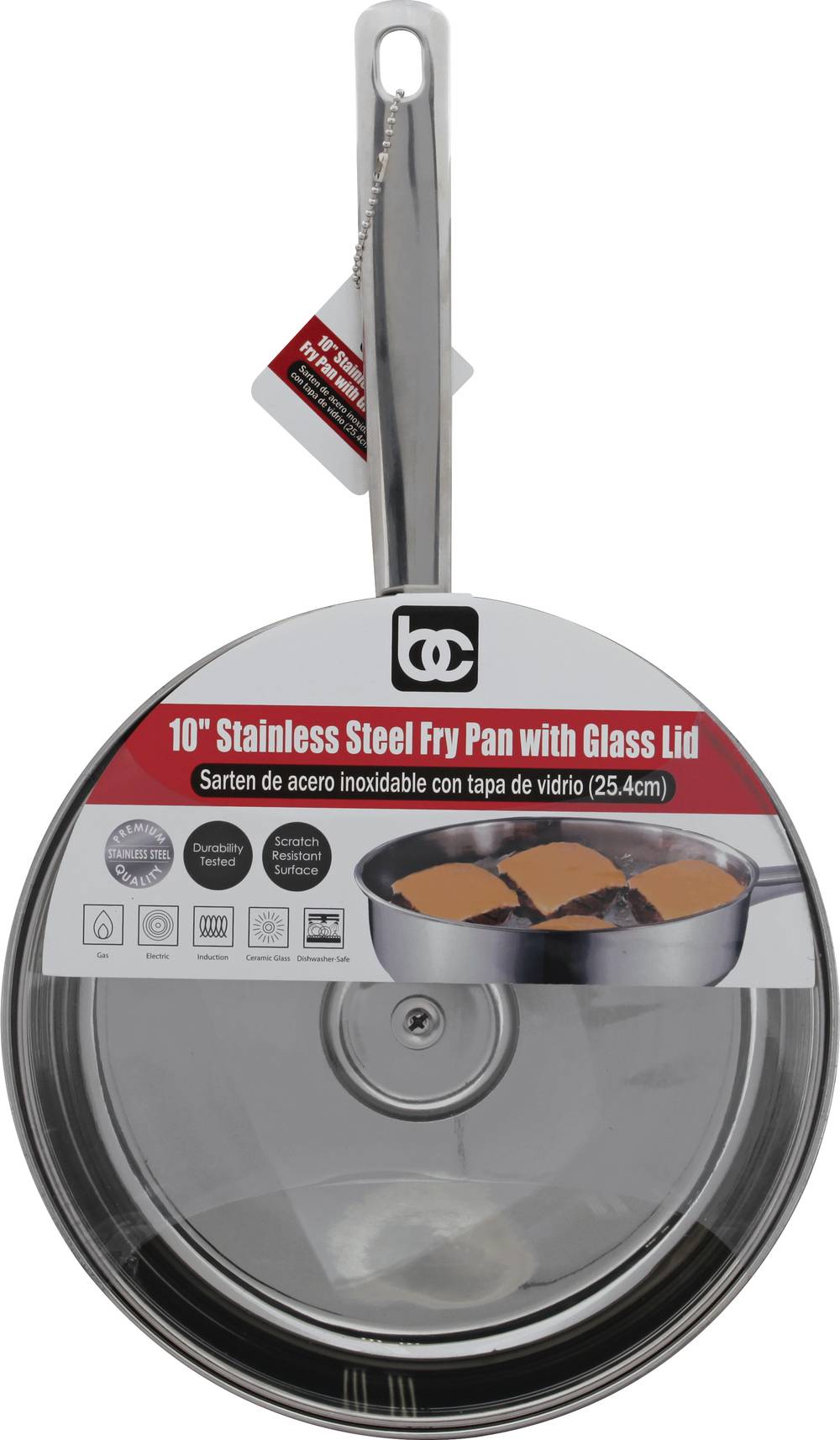 BC 10" Stainless Steel Fry Pan With Glass Lid