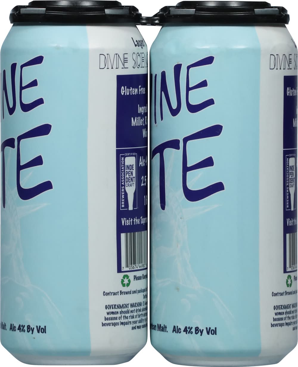 Divine Science Brewing Lite Lager Beer (4 x 16 fl oz)