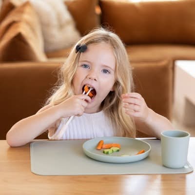 Hello, fine motor skills! The Lalo Chopsticks are designed for little learners ready to level up mealtime. Made from non-toxic, BPA-free food-grade silicone and eco-friendly wheat straw PP, the tips feature a unique dot pattern for better grip—helping toddlers grab, hold, and practice with confidence. The removable holders offer extra support for beginners, making self-feeding easier (and a lot more fun). Built to last and dishwasher safe for easy cleanup, they’re the perfect first chopsticks for big(ger) bites and new food adventures. • Color: Sage • Size: 7.3x3x0.5 in