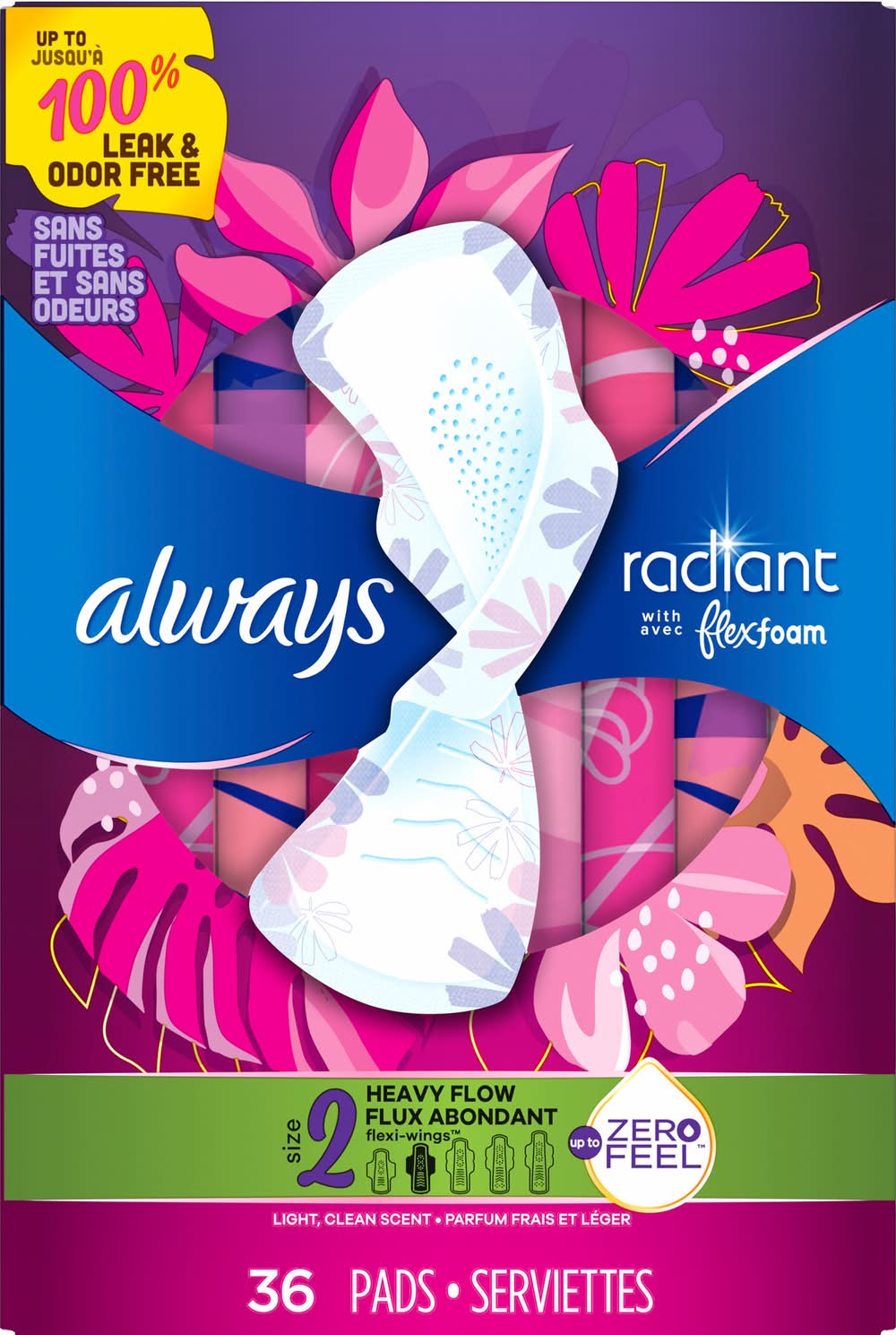 Your Always Radiant Flexfoam Heavy Flow Pads With Wings Size 2 delivery options may vary depending on where you are in a city. Enter your address to browse Always Radiant Flexfoam Heavy Flow Pads With Wings Size 2 delivery options near you.