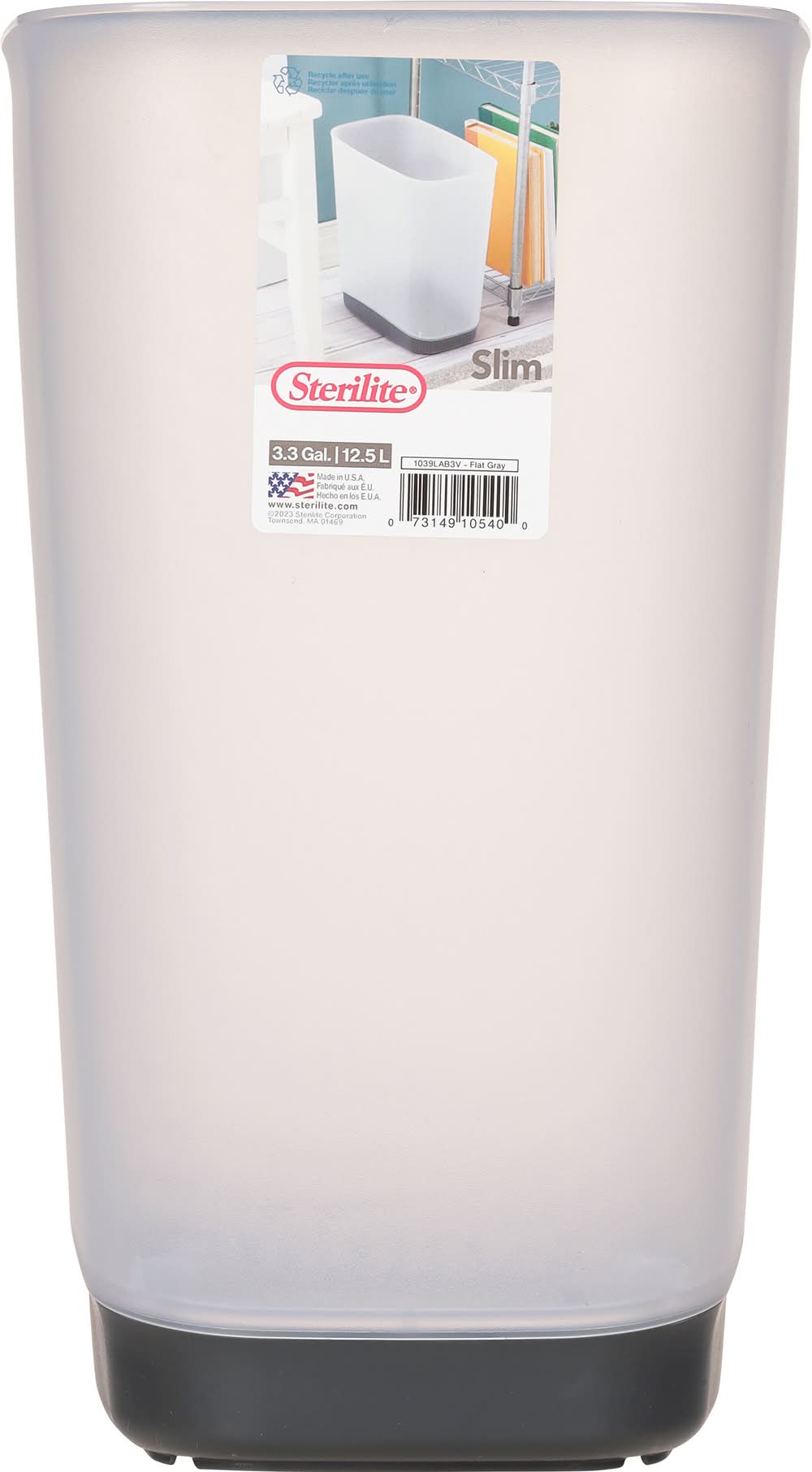 Wastebasket, Flat Gray, Rectangular, Slim, 3.3 Gallon