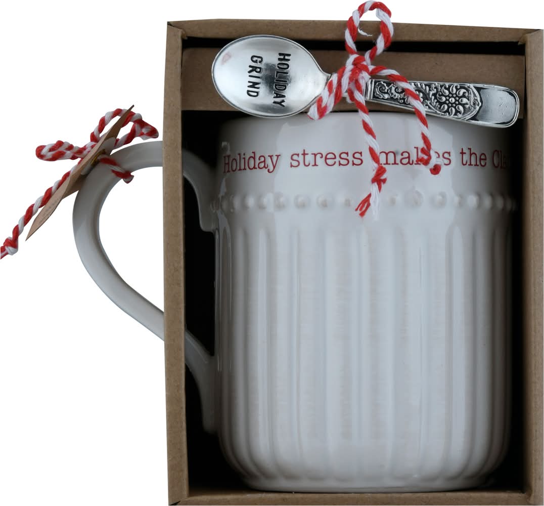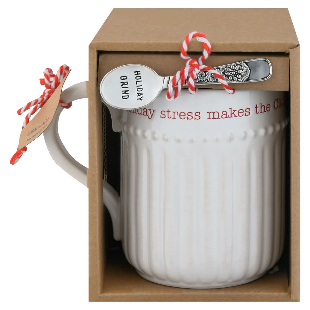 Holiday grind. Holiday stress makes the Claus come out. www.mudpie.com. Made in China. Mud Pie,