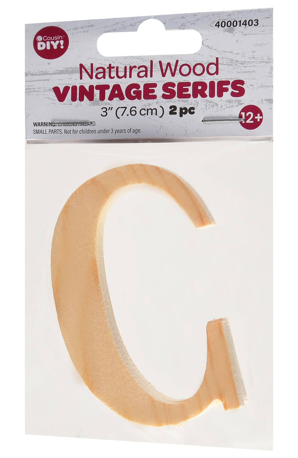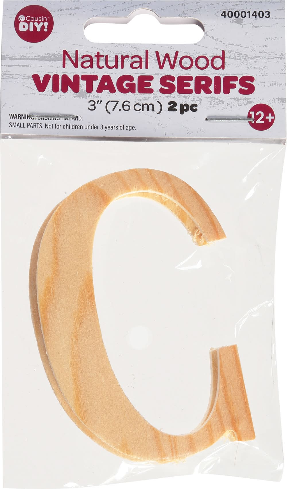 Cousin DIY! C Natural Wood Vintage Serifs, 3 inches (2 ct)