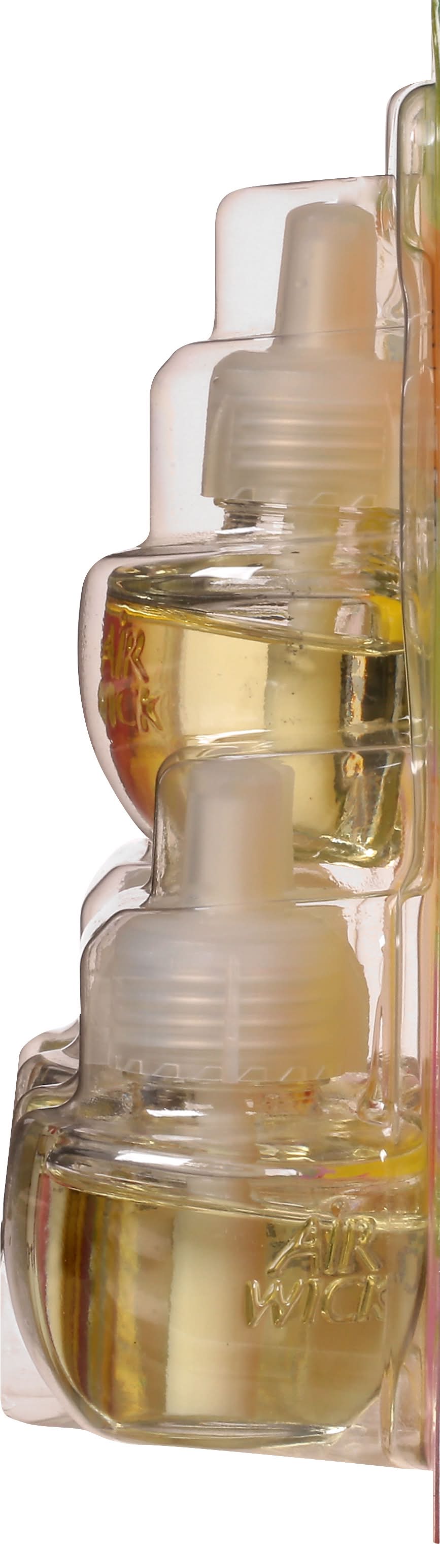 Limited Edition Infused with natural essential oils. Protect nature, plant wildflowers (help us by visiting airwick.us). Up to 300 days (based on low setting). Scented oil for electrical plug diffuser. Long lasting Fragrance. Great fragrance infused with natural essential oils. Free from phthalates, acetone. Health. Hygiene. Home. www.ariwick.us. how2recycle.info. Scan to learn more about Air Wick. Questions? 1-800--228-4722. For more ingredients information: www.ariwick.us. Check locally (not recycled in al communities). Made in Mexico. • Reckitt Benckiser, • Packaging: Reusable