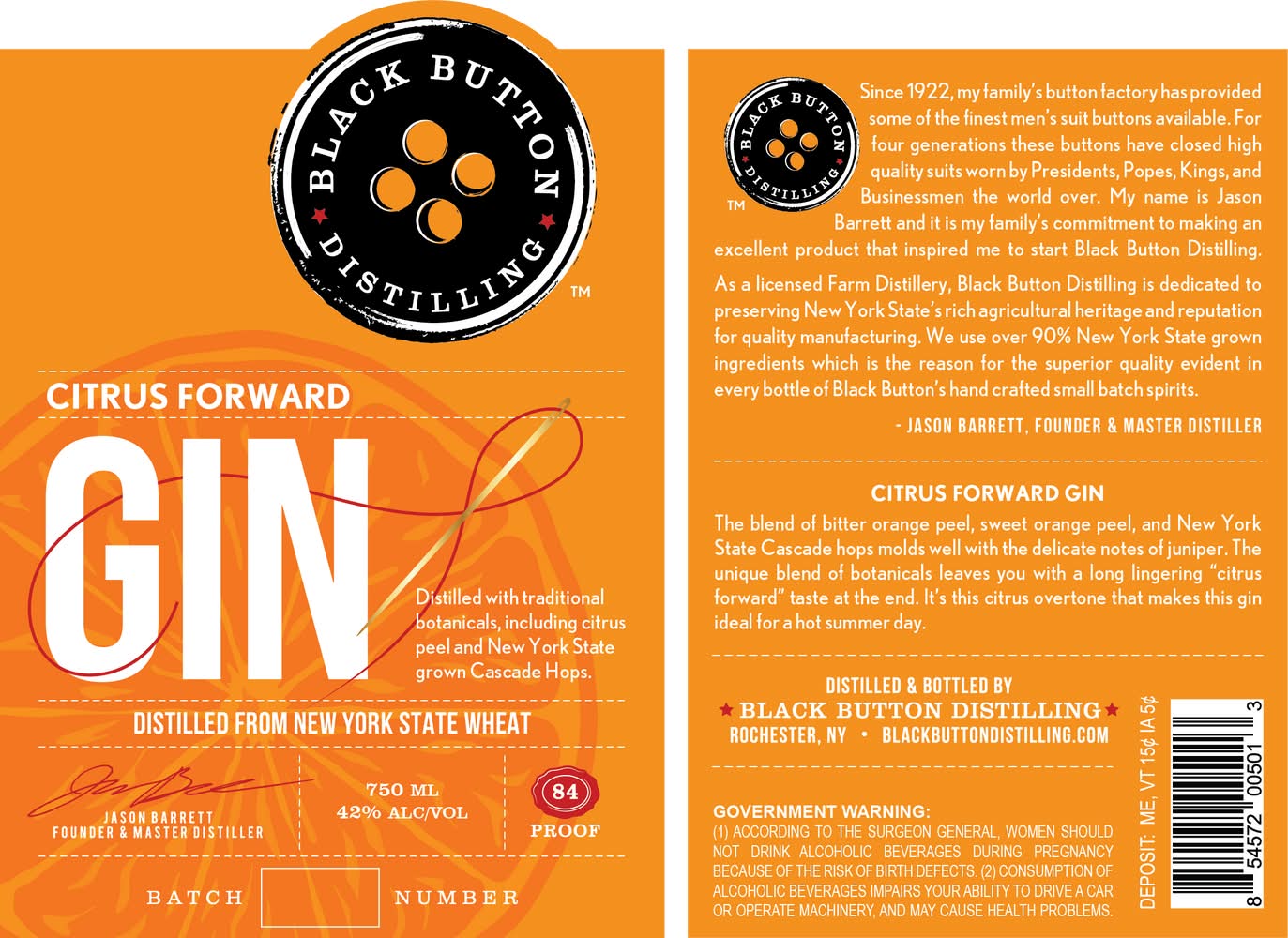 Black Button Distilling Button Citrus Forward Gin (750 ml)