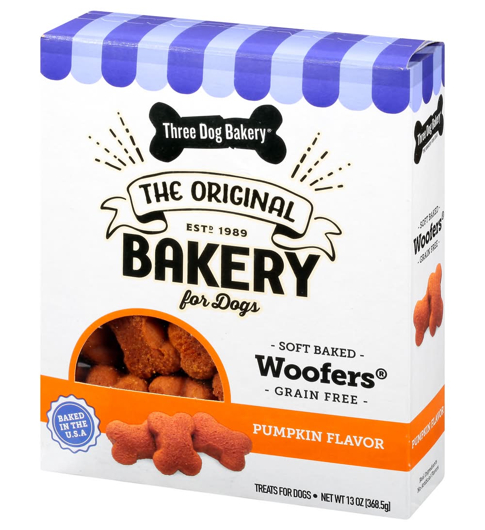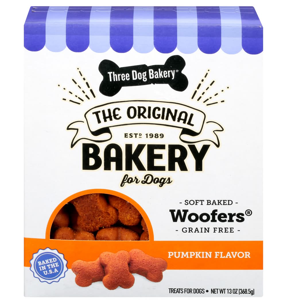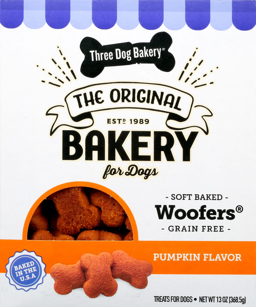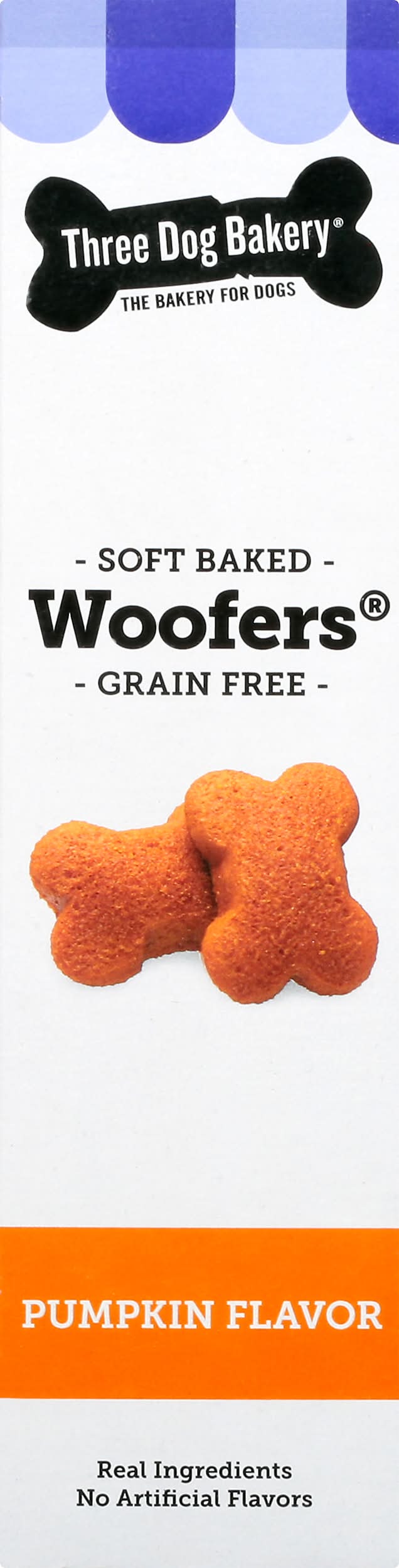 Three Dog Bakery Soft Baked Woofers Grain Free Treats For Dogs, Pumpkin (13 oz)