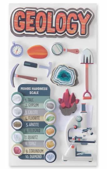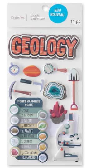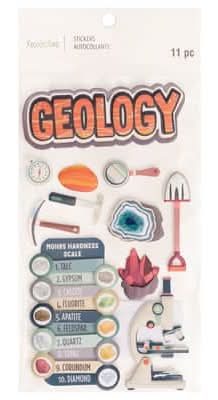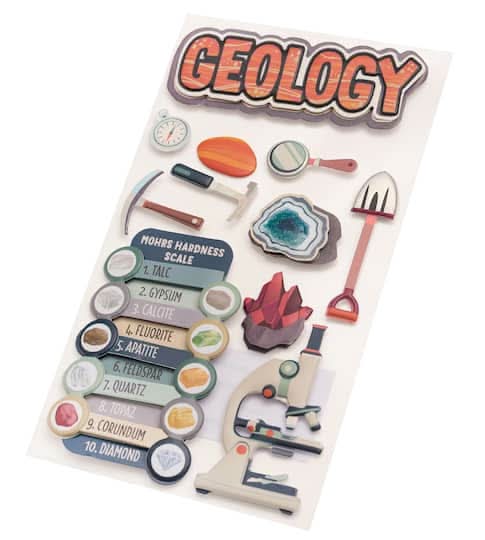 Find the Geology Dimensional Stickers by Recollections at Michaels. Use this geology dimensional sticker pack to instantly jazz up your papercraft project. You can also use them with stamps, embellishments or paints to accentuate your invites, scrapbook pages or journals. Geology themed. 4" x 8.5" (10.16cm x 21.59cm) sheet size . 11 stickers. Paper and epoxy
