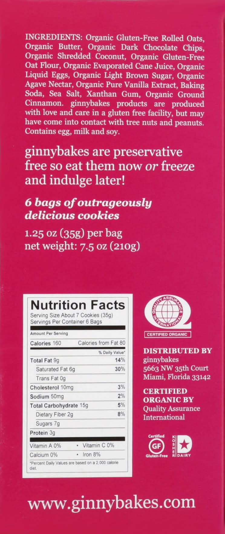 ginnyminis Organic Fresh Baked Gluten Free Cookies, Chocolate Chip-Oatmeal Bliss (1.25 oz, 6 ct)