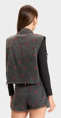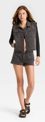 Wild Fable Denim Oversized Trucker Vest, Women, M, Black