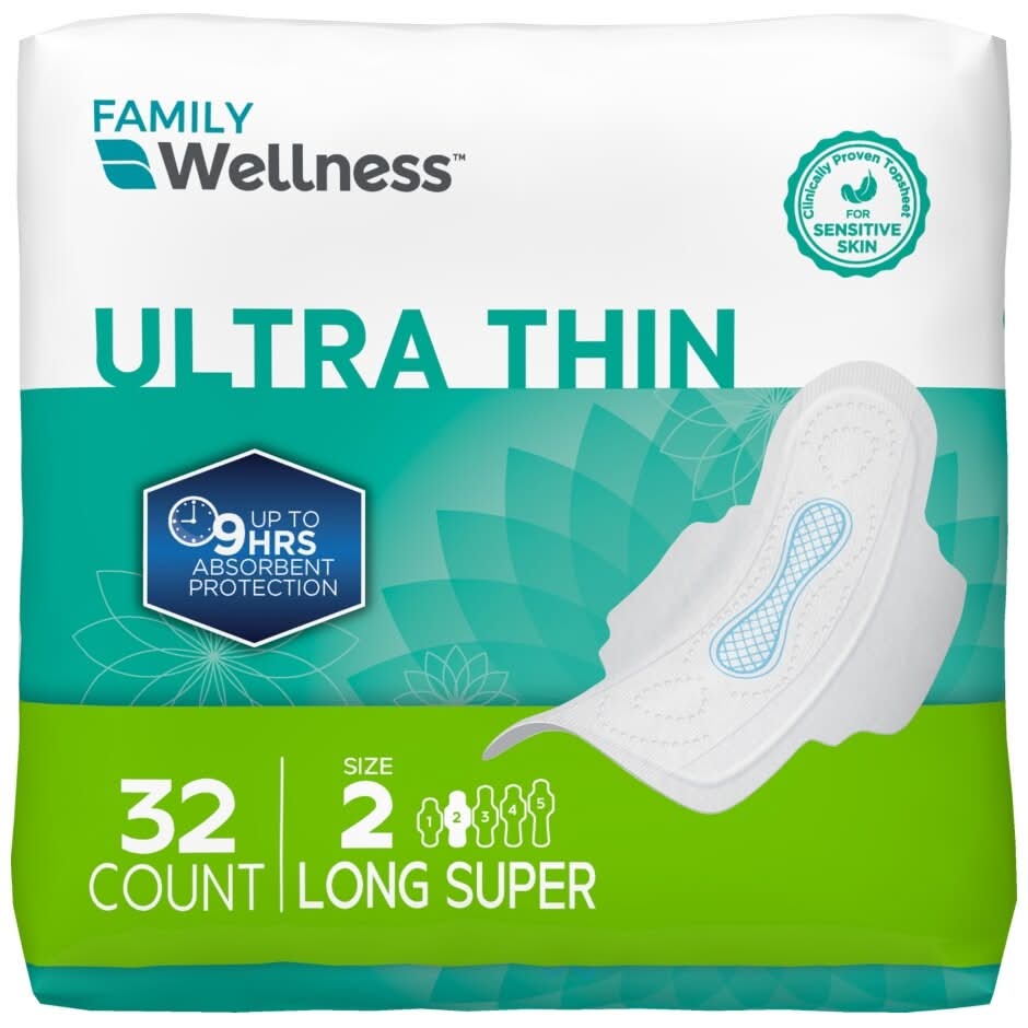 Family Wellness Ultra Thin Long Pads With Flexi-Wings, Women, 2 (32 ct)