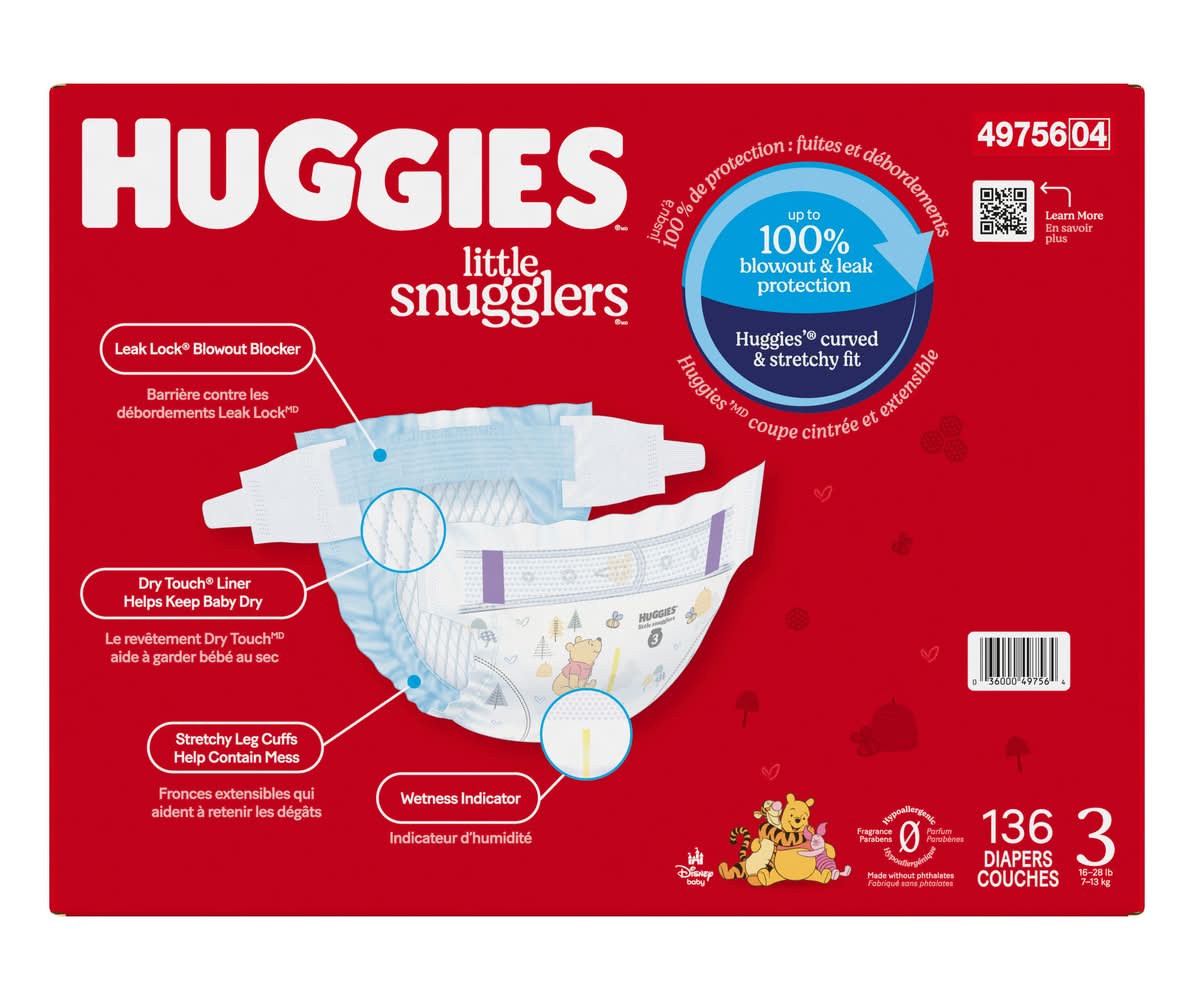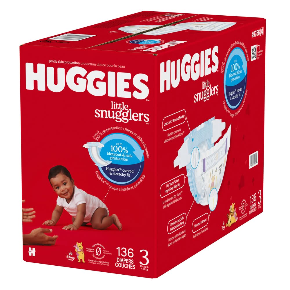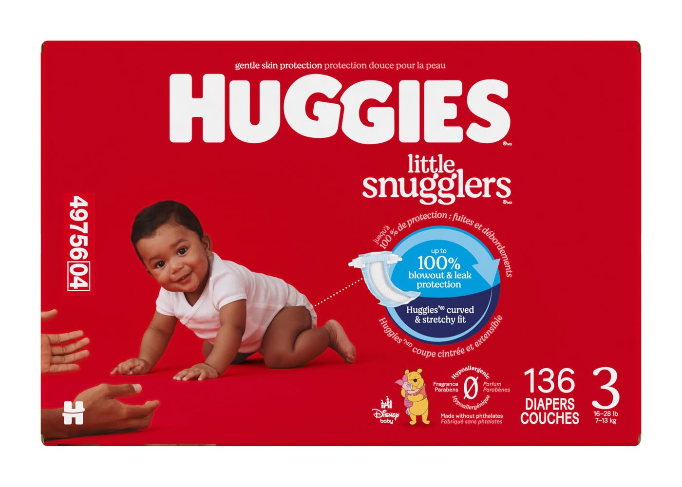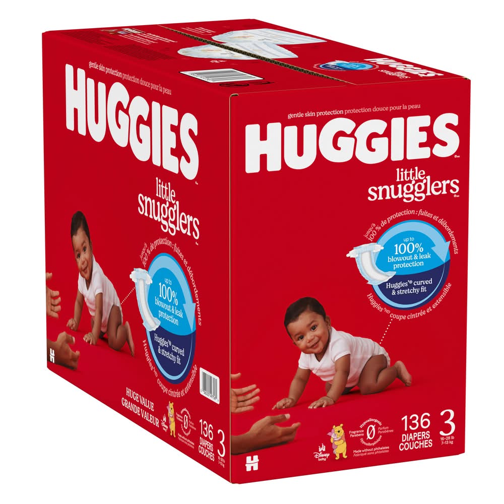 Huggies Little Snugglers Baby Diapers, 3 (136 ct)