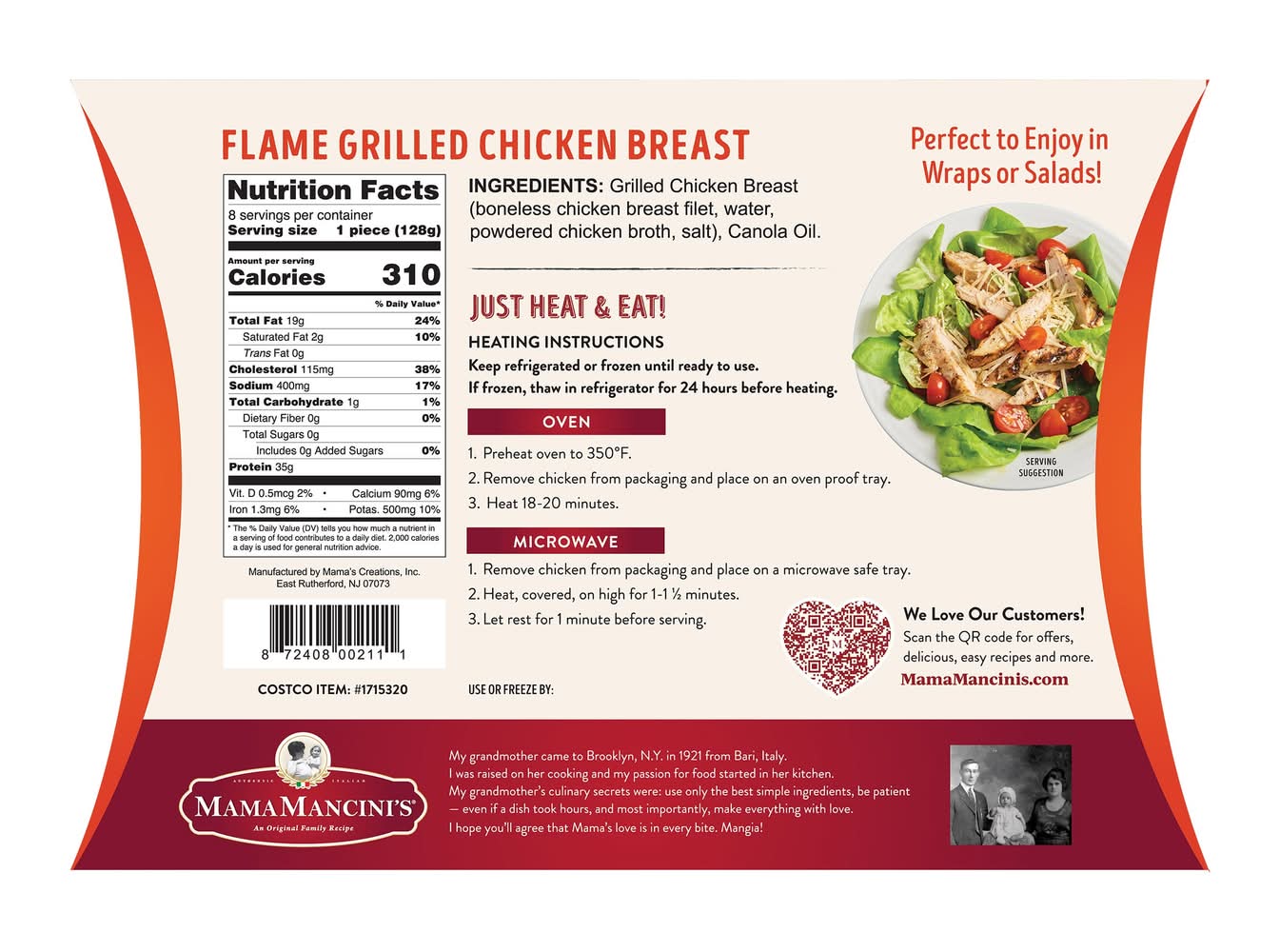 Mama Mancini's Flame Grilled Chicken Breast (36 oz, 8 ct)