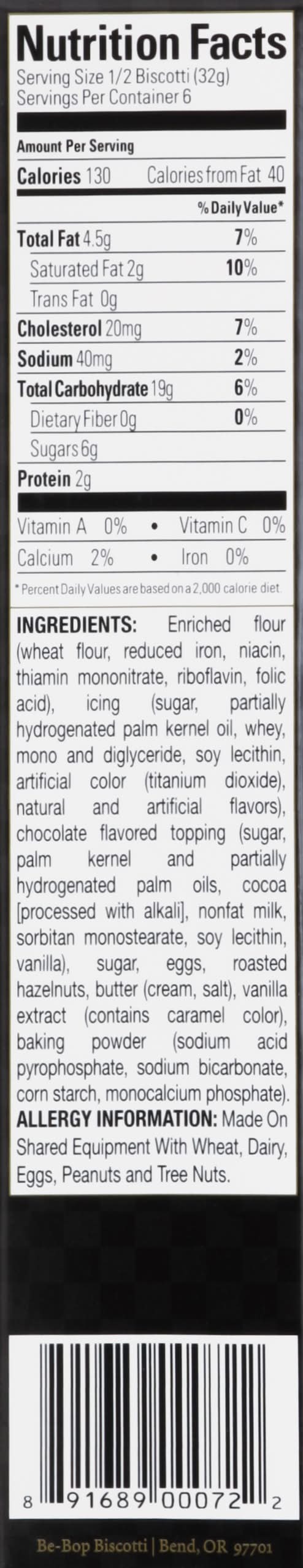 Biscotti, Hand-Crafted, Hazelnut Zebra BE BOP BISCOTTI,