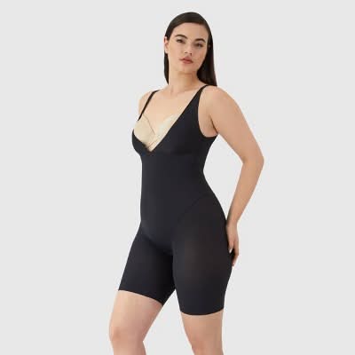 Maidenform Shapewear Open Bust Wear Your Own Bra Mid Thigh Bodysuit 874, Women, M, Black