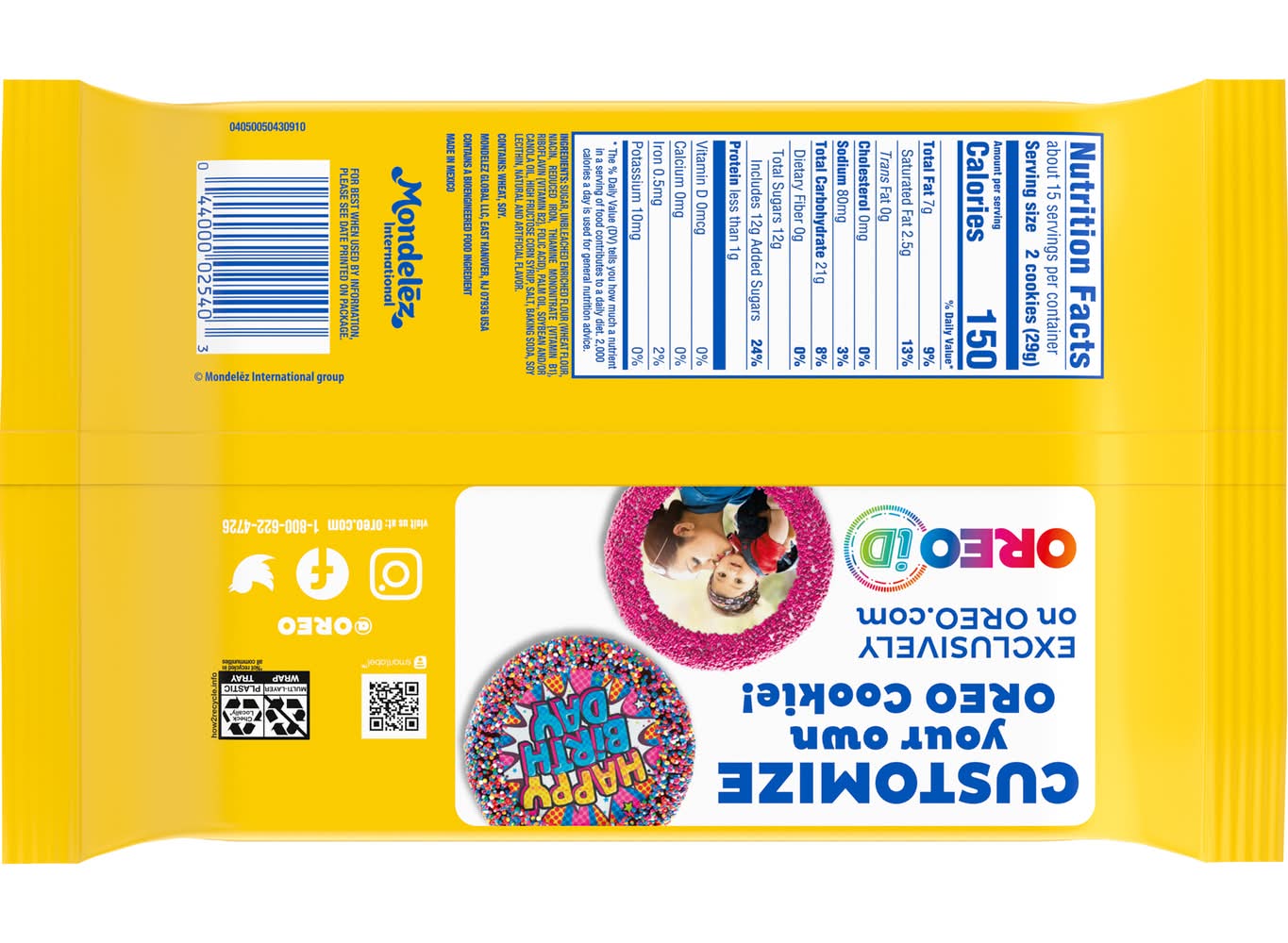 Take a delicious break with OREO Golden Double Stuf Sandwich Cookies. Supremely dunkable, these vanilla cookies sandwich a double helping of rich creme filling between the tempting taste of two lightly sweet golden wafers--making them milk's favorite cookie. Golden OREO cookies are great for serving at parties, packing in school lunches, or mixing into your favorite dessert recipe. The resealable container with easy-pull tab keeps these vanilla sandwich cookies fresh and is perfect for snacking, sharing, or traveling. • Size: 14.03 OZ • Mondelez Global LLC, East Hanover,NJ,07936,USA • Packaging: Reusable