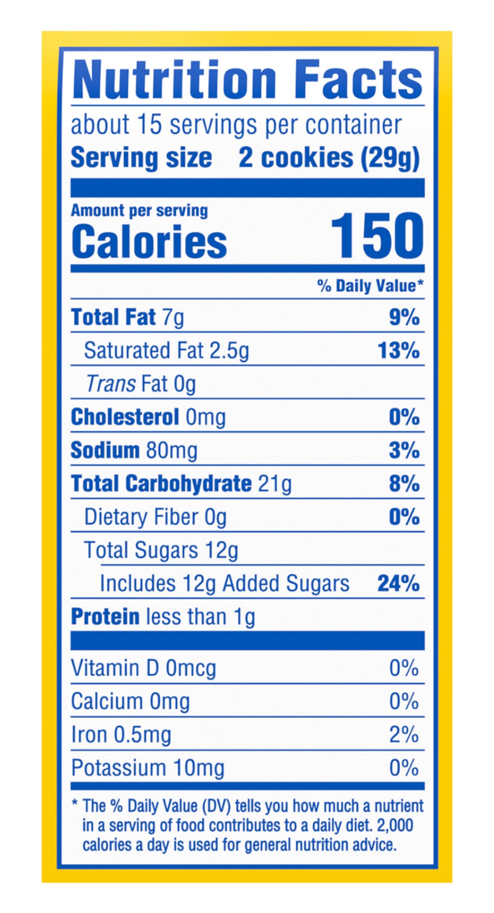 Ingredients: INGREDIENTS: SUGAR, UNBLEACHED ENRICHED FLOUR (WHEAT FLOUR, NIACIN, REDUCED IRON, THIAMINE MONONITRATE {VITAMIN B1}, RIBOFLAVIN {VITAMIN B2}, FOLIC ACID), PALM AND, OR CANOLA OIL, HIGH FRUCTOSE CORN SYRUP, SALT, BAKING SODA, SOY LECITHIN, ARTIFICIAL FLAVOR, NATURAL FLAVOR.CONTAINS: WHEAT, SOY. Contains: CONTAINS: WHEAT, SOY.